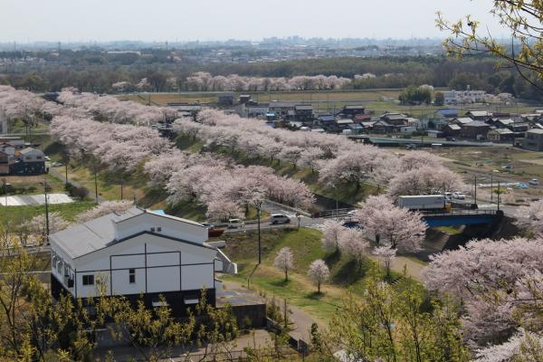 山の麓では、このあたりではお花見で有名な新境川の桜が咲いており、タンポポやスミレの花も楽しませてくれました。