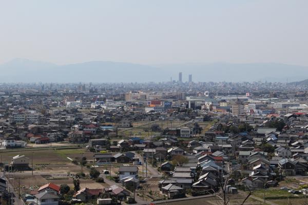 低い山ですが山頂からは、各務原市や岐阜市、名古屋方面、伊吹山、金華山、各務原アルプスなどが望めます。