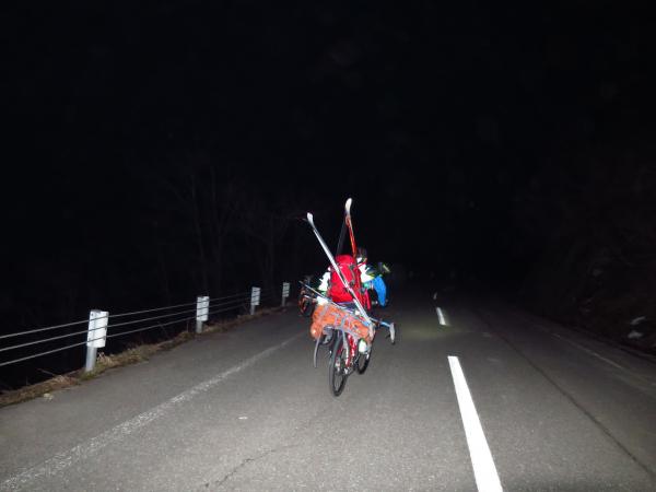 今回は普通の山スキーではなく、自転車とラン二ングを組み合わせたエクストリーム山行だった。