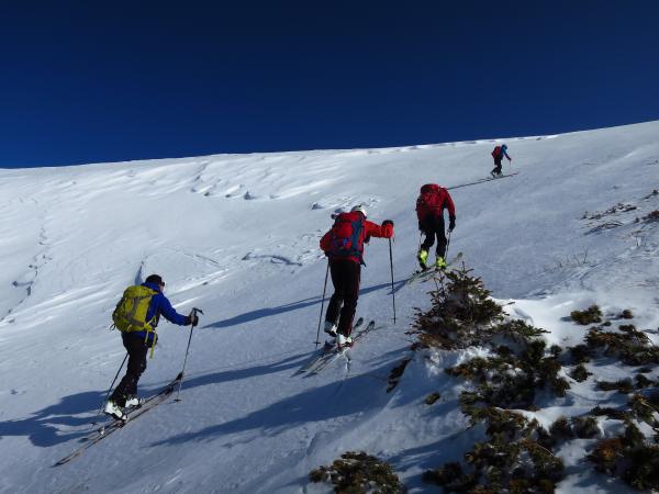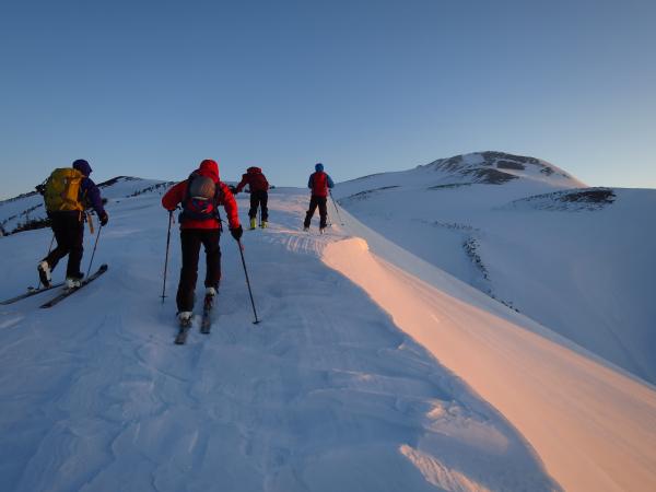 途中で何度かシールを貼りなおして登り返す場面もあったが、風も穏やかで全てが順調そのもの。