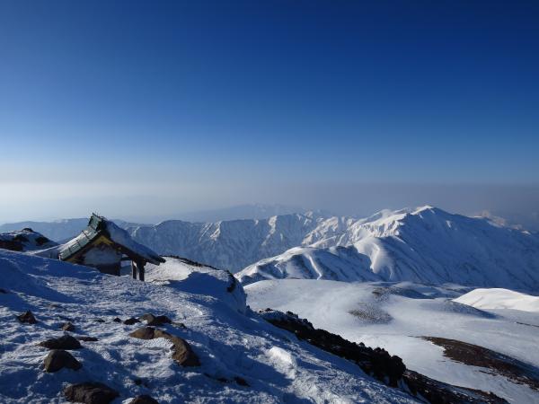 白山の周りは真っ青の空で、雪も純白に輝いていて絶景だった。