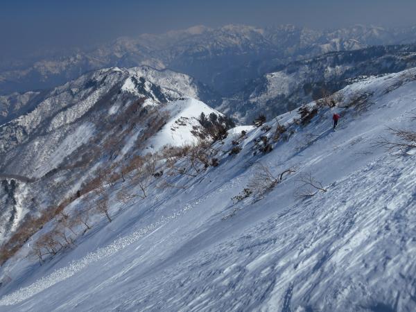 1549mのしかり場からは登り返しもなく滑るのみ。