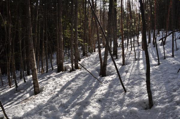 日差しが出ると体が熱くなりますが、地面の残雪の冷気が顔を冷やしてくれて、とても気持ち良い。