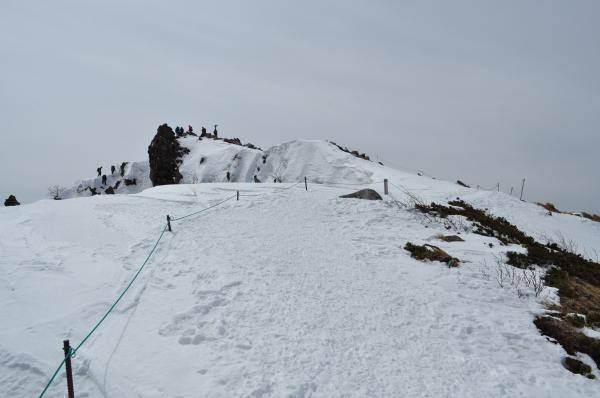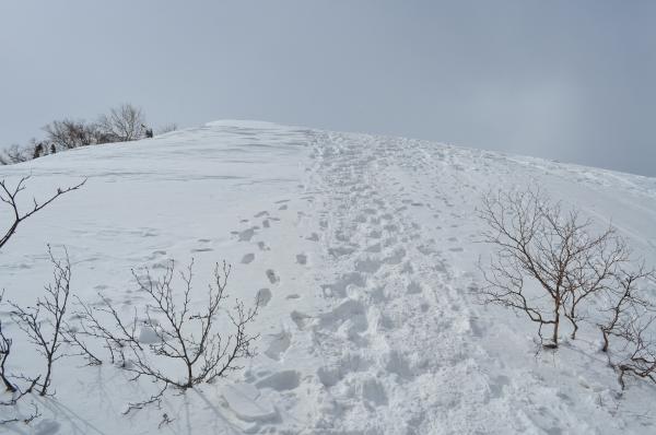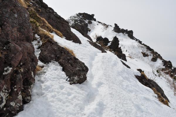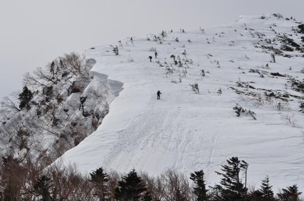黒百合ヒュッテから上部は雪庇や急な登りもあるので慎重に。