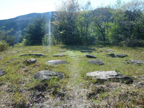 四王寺山は多くの遺跡があり、山城の跡地や石垣などが見られます。