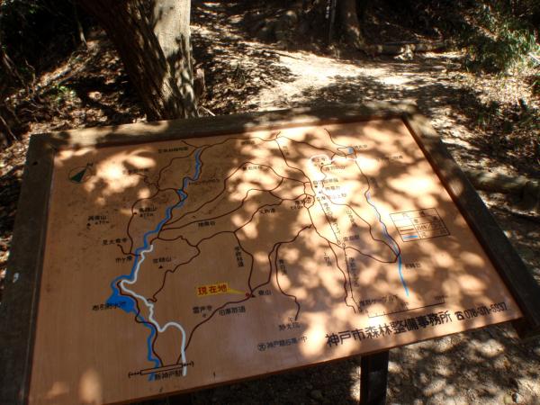 - JR新神戸駅(10分)雷声寺(30分)東山分岐(20分)天狗道分岐(この先で引き返す)