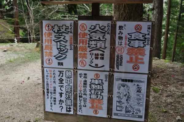 これらを受付所でチェックされ、氏名と住所を書いて、入山時間を記入して登り、下山時に下山時間を記入します。