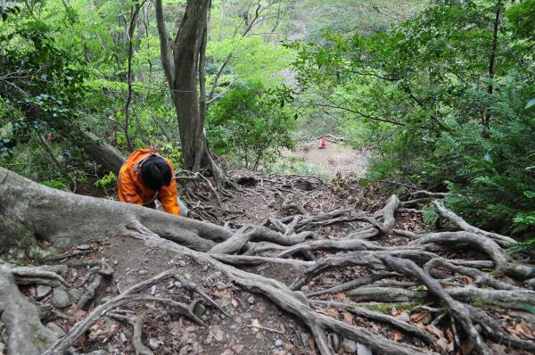 - 木の根を掴んで登る個所や、鎖場、馬の背があります。