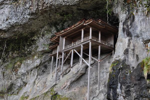 断崖絶壁の岩のくぼみにすっぽりと収まっており、お堂ごと投げ入れたんじゃないか、というのが名前の由来。