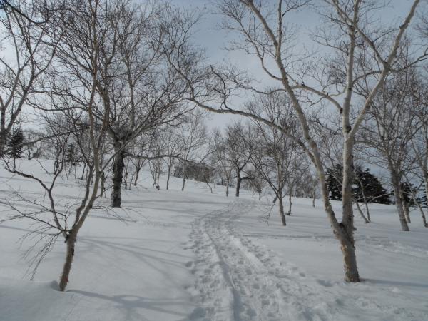 ホコ岩から下のべべルイ沢は先程のルンゼとはうって変わって広大なオープンバーン。富良野岳BCと言えば、このべべルイ沢が主流なのも頷けます。途中ストップ雪があったものの、非常に快適な斜面でした。バウダー期に来ればさぞかし楽しいことでしょう。あっという間に最初の渡渉地点まで戻ってくることができました。
