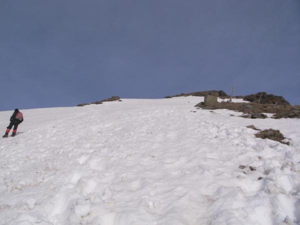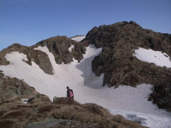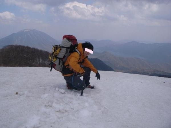 奥白根本峰に上がるのなら まだまだピッケルアイゼンは必携。