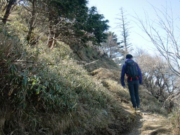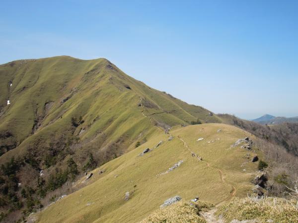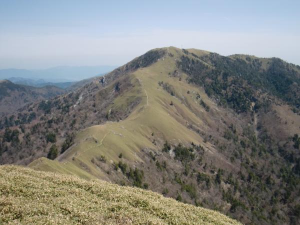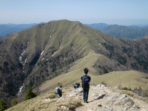 剣山頂上から次郎笈までは見晴しのいい稜線歩きが楽しめますが、登山道が細いので、