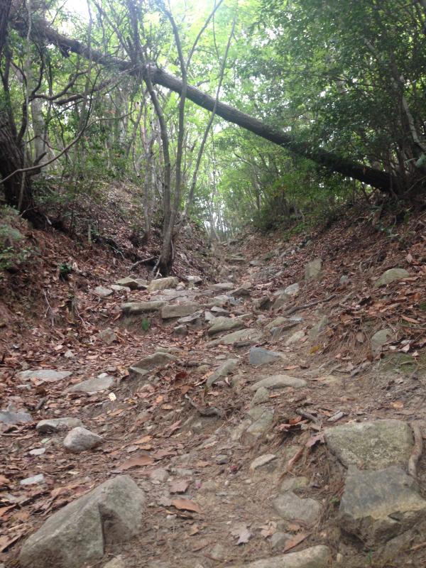 登山口すぐの階段で心を折られ、とてもランとは呼べない足取りで歩を進め、