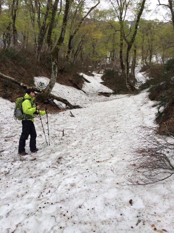 6合目、山頂付近も少し雪があり気温も山頂は0℃でした。
