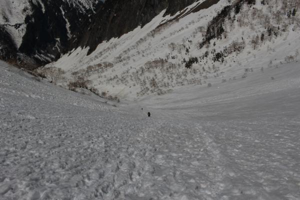 本谷橋から涸沢まで雪の上を歩きます。