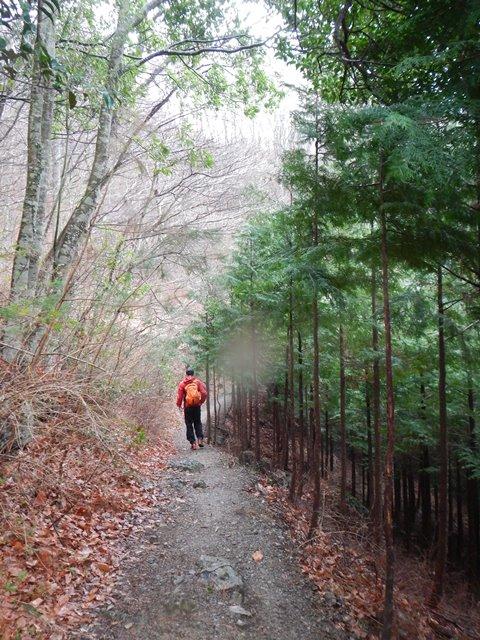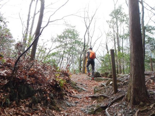 頂上のカヤ場と展望が良いのが売りですが、今回はそういう期待はまったく持てません。なにせ春の嵐、雨だけでなく風も非常に強かったです。稜線に出てからは特に強烈で、体が持っていかれそうでした。