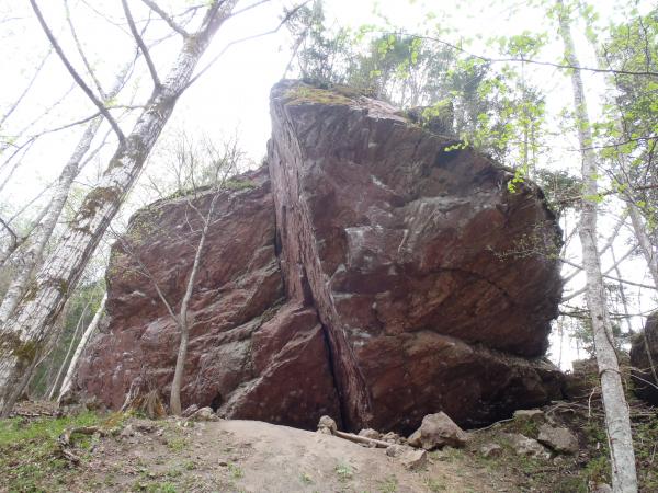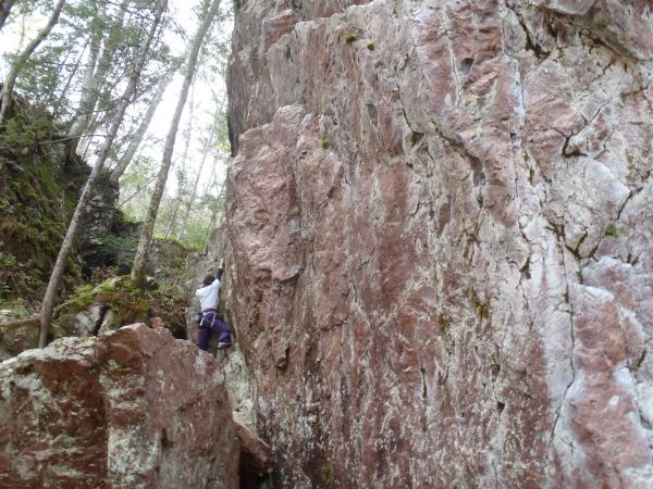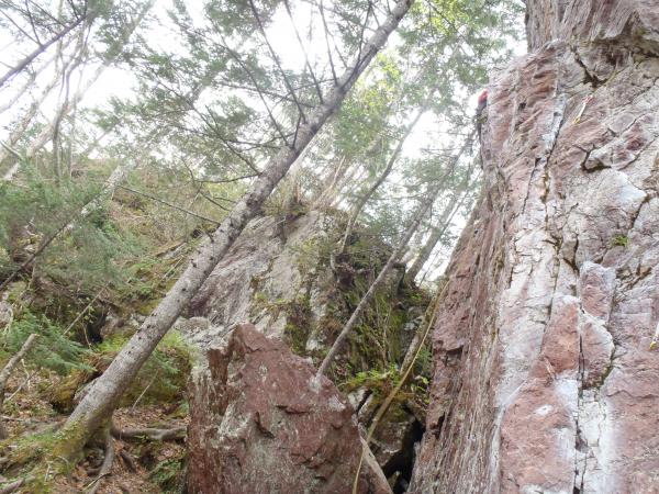 広大な自然の中に大きな赤いチャート。気持ちのいい環境でクライミングできます。