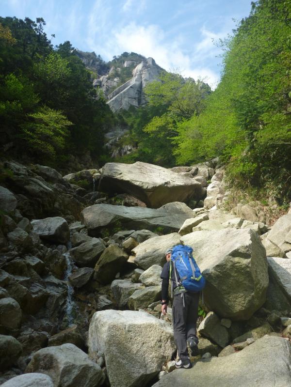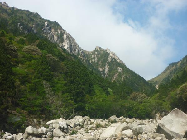- 裏道登山口<35分>藤内小屋<50分>前尾根取り付き地点<200分>やぐら下終了点<40分>藤内小屋<20分>裏道登山口