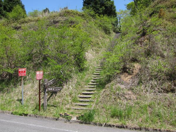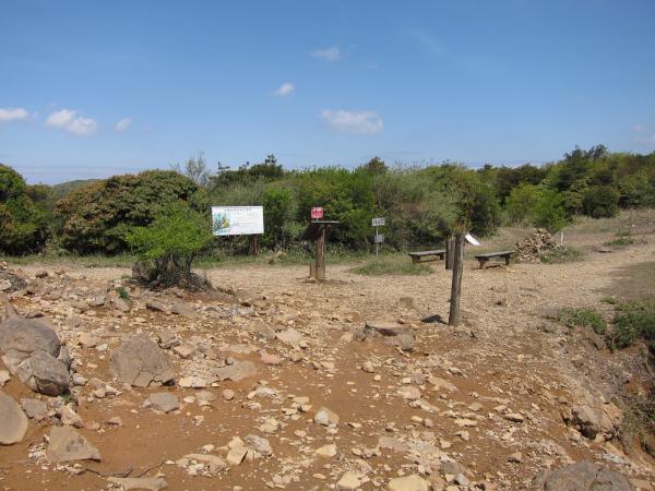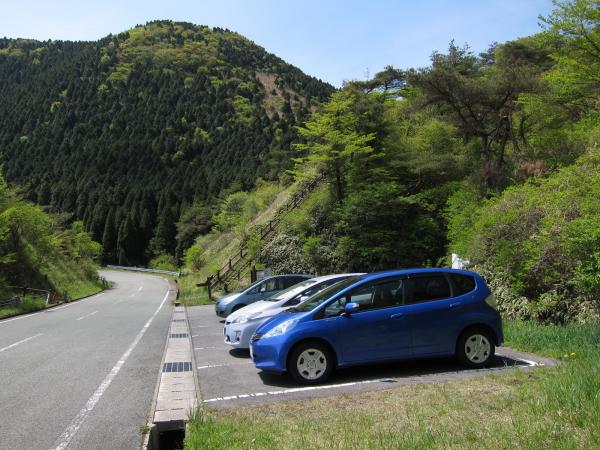 - 地蔵峠登山口[1050m]→(10分)→地蔵峠→(20分)→道路出合い→(60分)→分岐→(20分)→冠ヶ岳[1154.1m]→(60分)→道路出合い→(車道10分)→地蔵峠登山口