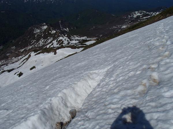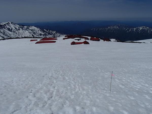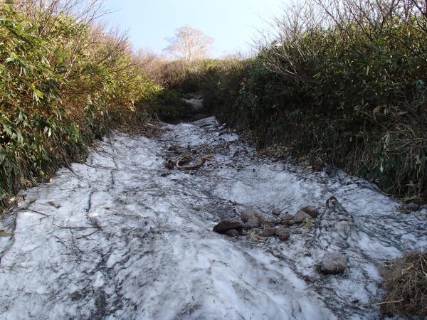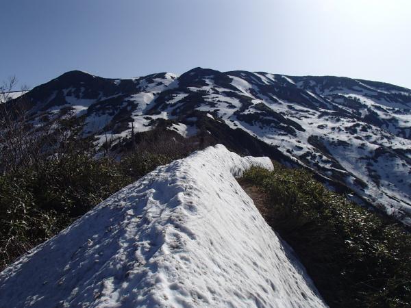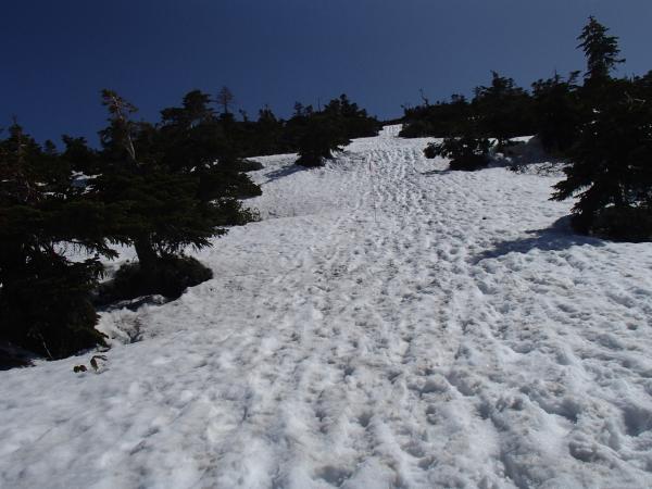 - 観光新道の7割程度が雪に覆われています。所々ルートがわかりにくい箇所もあります。