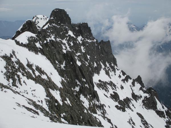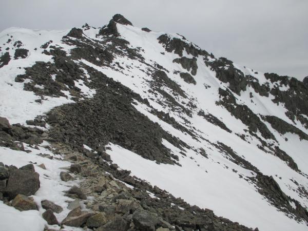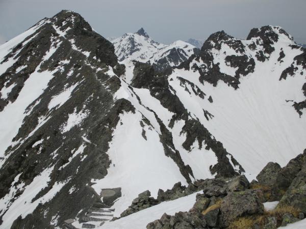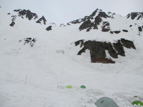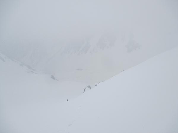 2年振りに残雪の奥穂高岳に行って来ました。登山者はまばらでしたが、トレースはしっかりと付いており、天候も落ち着いていたため、2年前より楽に登頂できました。しかしながら夜からは暴風雪になり、テントは潰れ、一晩中強風と吹き込む雪に耐える羽目になりました。翌朝、穂高岳山荘の方から「これから寒気が入ってきて21日午後から22日にかけてさらに荒れるため、下山するなら21日の午前中か23日。」とアドバイスを受け、早々に下山しました。