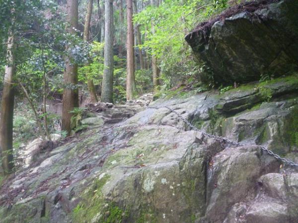 天狗谷道は最初は少し急坂が続きます。鎖もあります。滑りやすい箇所には注意が必要です