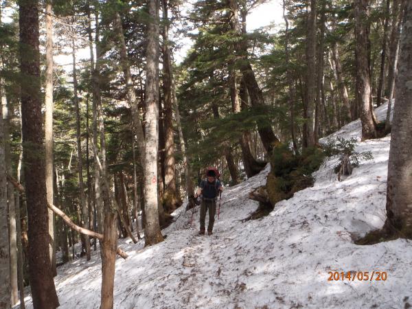 - 長塀尾根途中から残雪がありましたが、アイゼンは不要でした。 危険箇所はありませんが、トレースが無数にあります。 鬱蒼とした樹林帯は踏み抜きに注意してください。