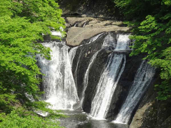 しております。落差120mの滝は岩盤が4段になっており、「四度の滝」の別名が