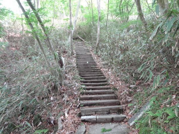 まず旧道を歩いて、双耳峰の鞍部に行き、月居山に登ったあと、前山から