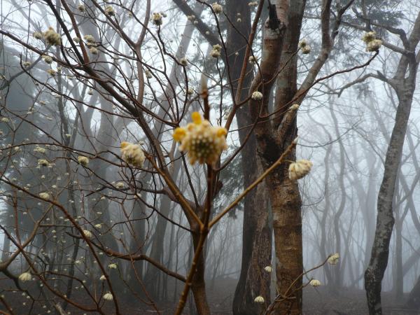 雨の中、ぽわわ~んと幻想的なミツマタ達が。