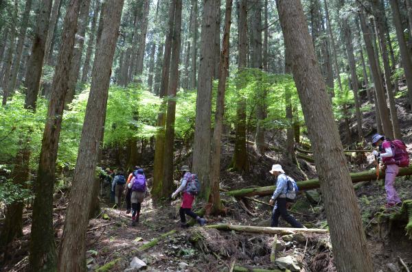 - 落ち葉や枯れ木が重なり急斜面では慎重に歩かないと転倒の恐れがあります。