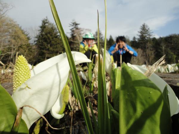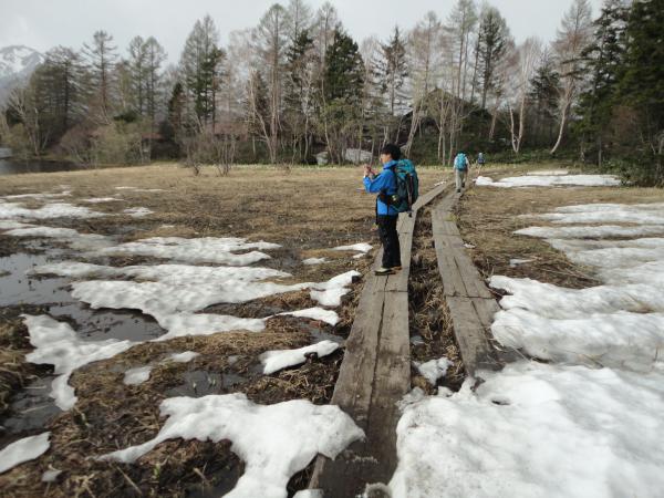 金曜日、週末を尾瀬で楽しむ観光客、登山者で賑わっていました。木道にもまだまだ雪が残り滑りやすいです。観光の方もトレッキングシューズとトレッキングポールをそろえて行くと良さそうです(ゝω・)