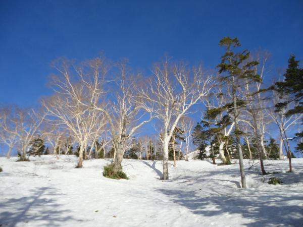- 長英新道はしっかりと雪がついていますが、気温が高くゆるんでいるのでアイゼンなしで登りも下りも歩けます。