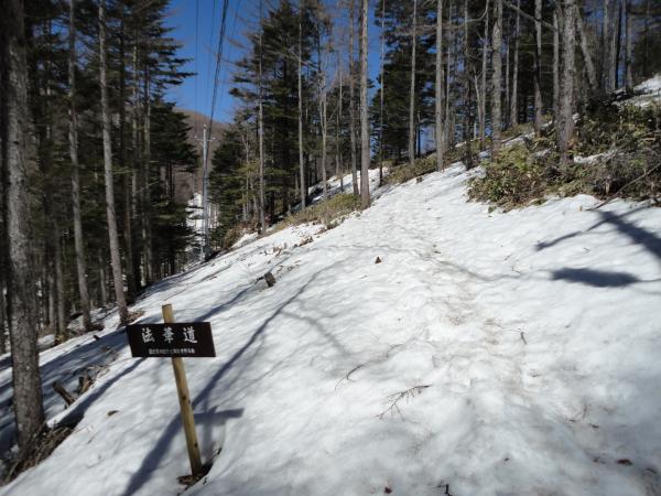 アイゼン無しで登れますが、日蔭は凍結個所あり。下りは軽アイゼン使用。