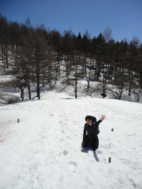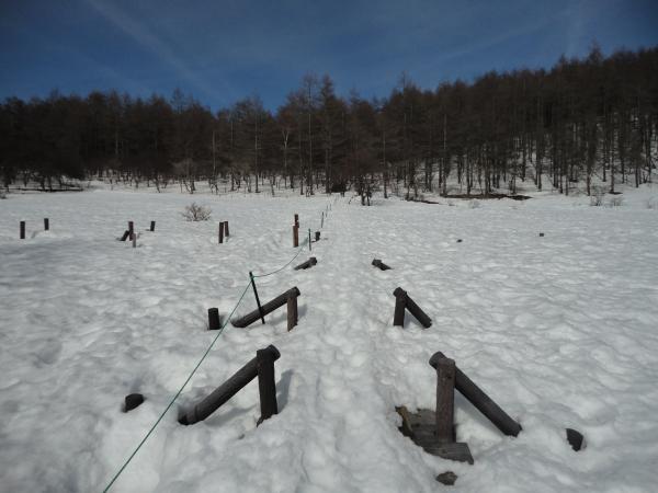 前日までの雨と気温の上昇で雪は少なくなっていました。湿原ではズボズボと雪を踏み、踏み抜き…なかなか前に進めません。湿原から先、マナスル山荘までは雪も踏み固められ、傾斜もなく歩きやすかったです。