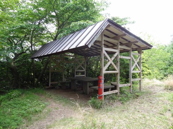 休憩所が建つ向陽台分岐に着くと、高鈴山山頂にある雨量観測塔が