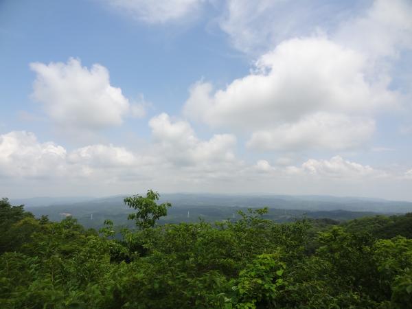 見えてきます。舗装路で山頂に到着すると展望台やベンチ、トイレも