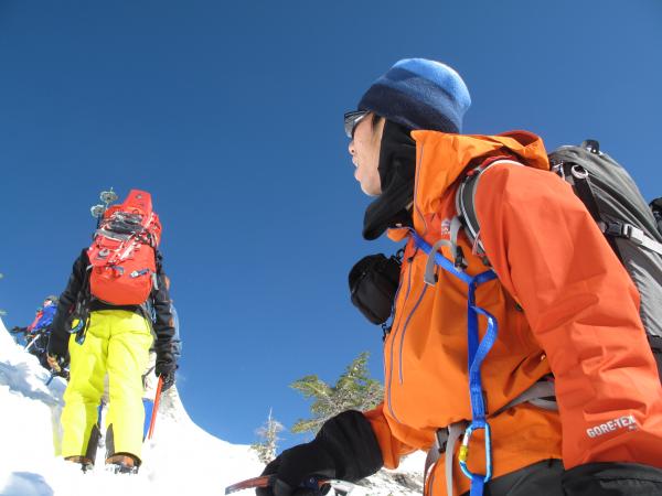 加藤ガイド、山下ガイド、新井ガイドには様々な事を教えて頂きました。基本的なピッケル、アイゼンの使い方から冬山で役立つ豆知識。