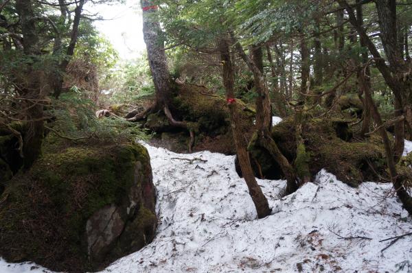 厳冬期の雪山よりも、この残雪期のほうが歩きづらいと感じました^^;
