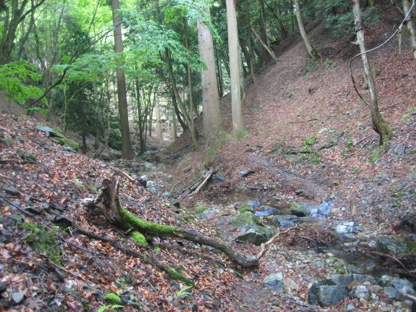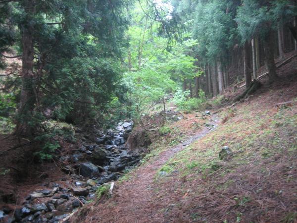⑥二の谷コースはロープが設置されているような急な道を沢沿いに歩きます