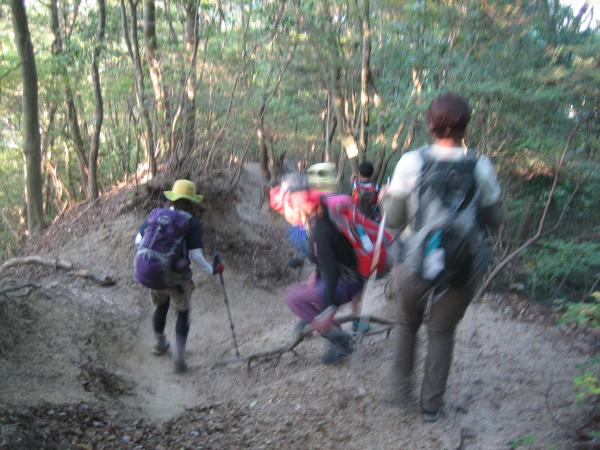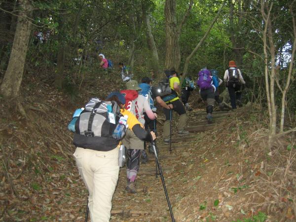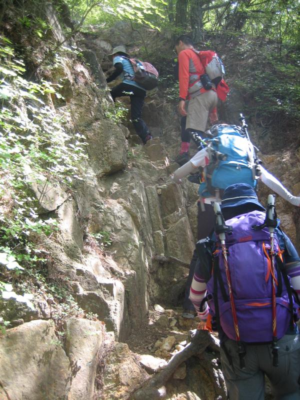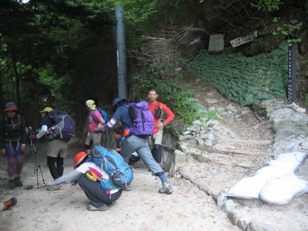 今日も暑いし、最初にヤマ場の摩耶山への上りは他チームで渋滞し、ゆっくりペース。風もなく、むし暑い登山道でした。
