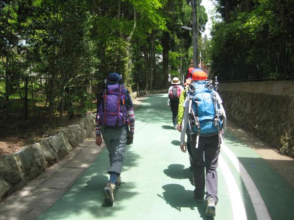 登山道を行く区間として、掬星台からアゴニ―坂、摩耶山自然の家からサウスロード方面、三国池分岐から丁字ヶ辻方面、六甲ガーデンテラスからは電波塔横の道、ガーデンテラスから先、六甲最高峰までは5回ほど道路を横切ります。