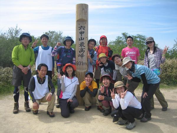 さっき通らなかった?と感じるほど。撮影渋滞の中、六甲最高峰では記念撮影しました。