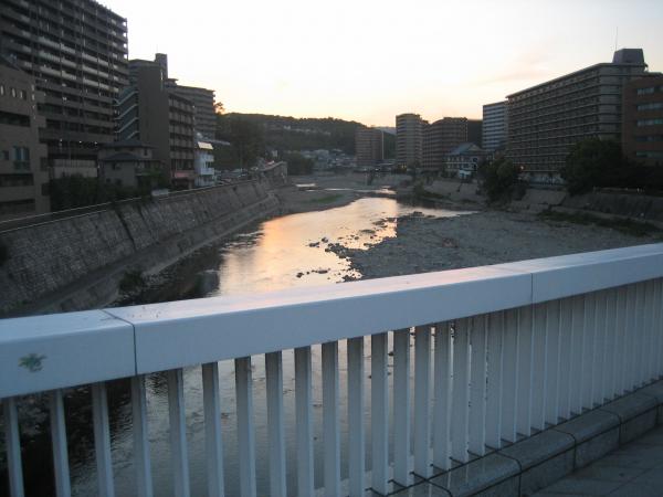 ⑩甲子園大学からは川沿いに行きます。最後は宝塚温泉へ出ます