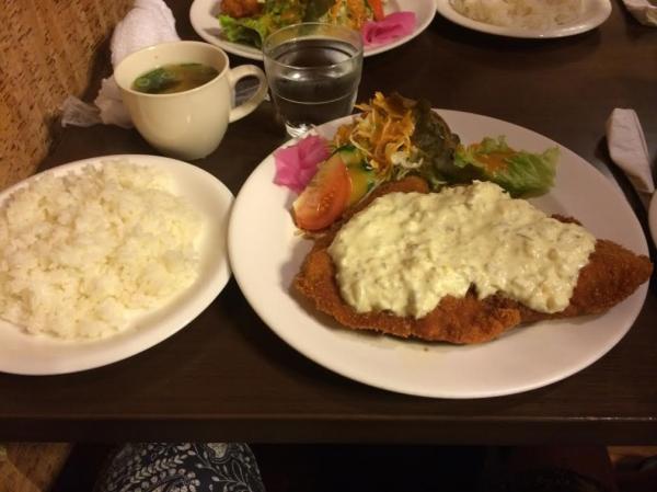 帰りに御手洗名物の「特大チキン南蛮定食」を食べ、満腹を通り越して後悔しながら岩旅終了。