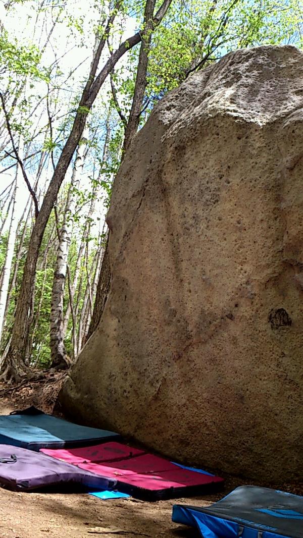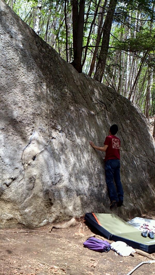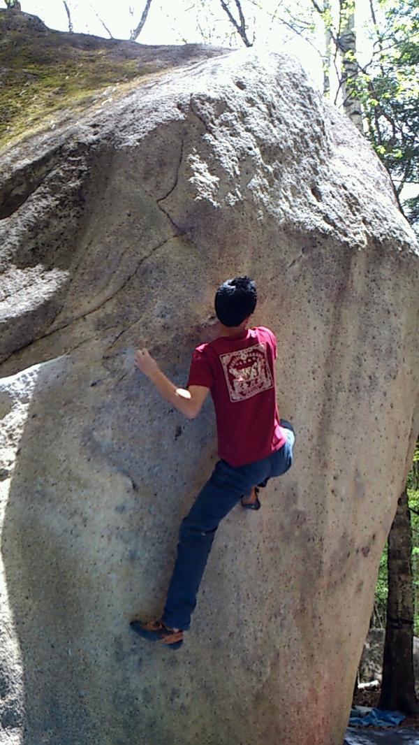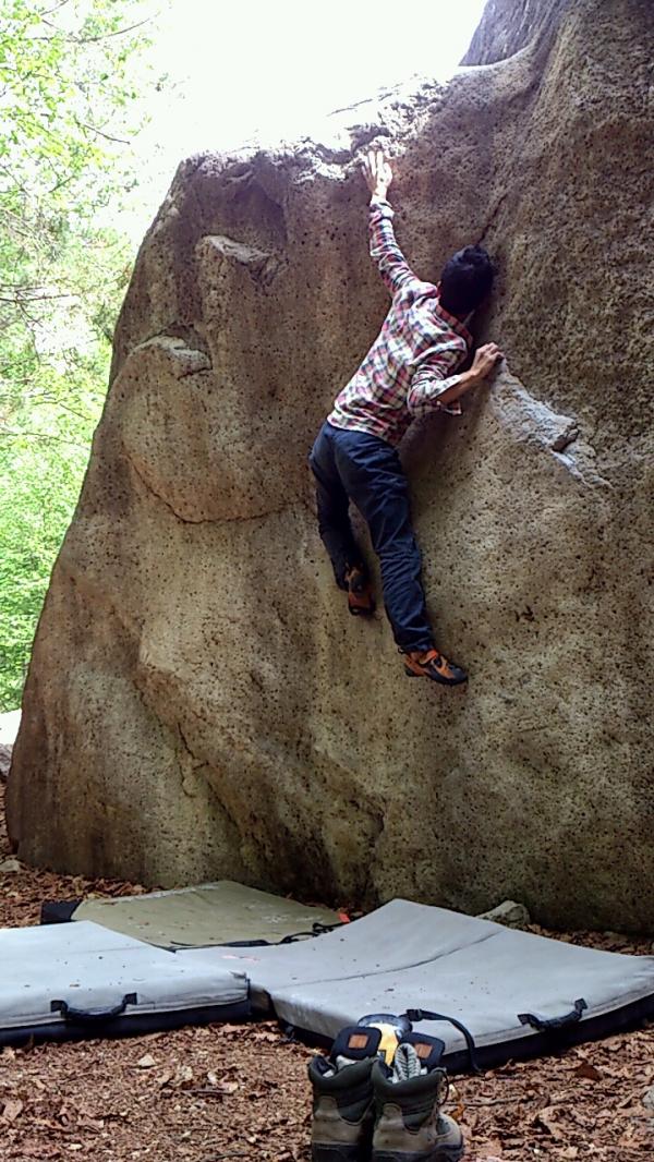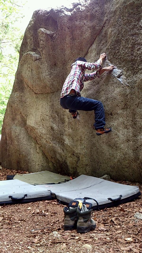 立川より車で2時間半。初の小川山はメジャーエリアまでのアプローチも短く快適でした。触ったことのない課題ばかりで、目につく課題すべて触るも、暑さと岩慣れしてなさに、段課題はすべて敗退しました。CLIMBINGjoy No12 でも紹介されている「穴社員」「コンケーブ」はどちらも名作でした。