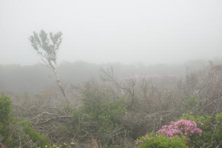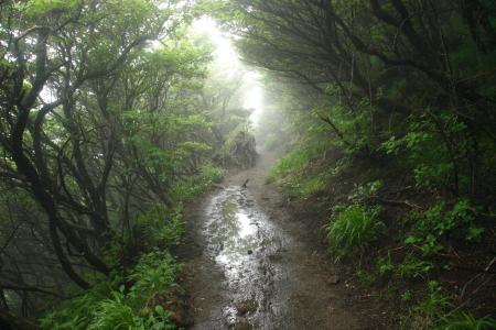 大船山から北大船山への稜線は道が細く両側からの木々の雫で全身びしょ濡れになるので雨具を上下着て歩きました。