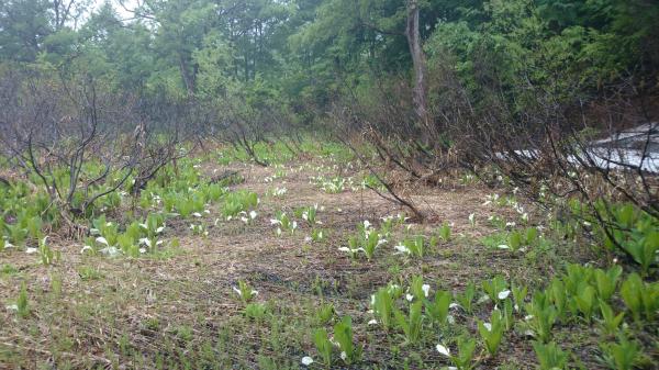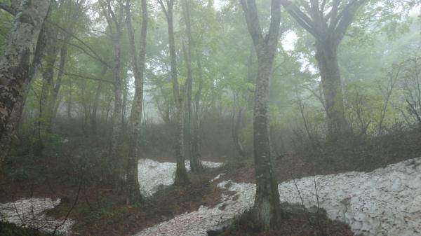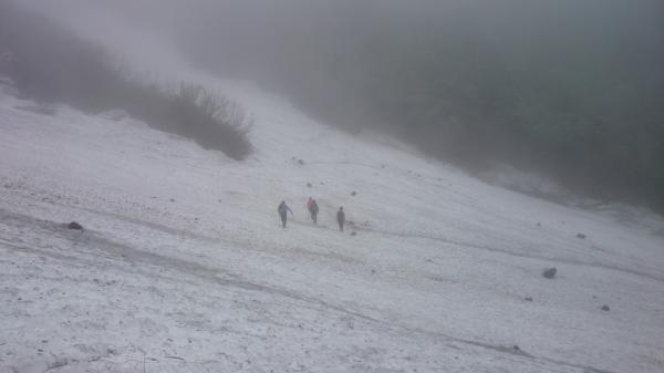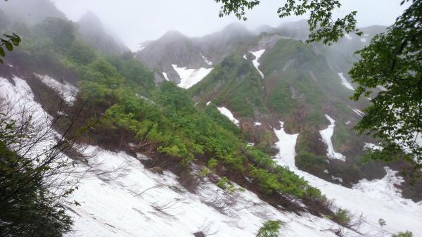 - ブナ平~荒菅沢まで雪の上を歩きます。荒菅沢は下りながらトラバースしていきます。軽アイゼンがあると安心です。登山口付近の広河原では水芭蕉、山頂手前の笹平ではハクサンイチゲが群生して綺麗に咲いていました。終日雨だったので登山道はぬかるんでいました。山頂から笹平の下山は急傾斜なのでスリップに要注意です。