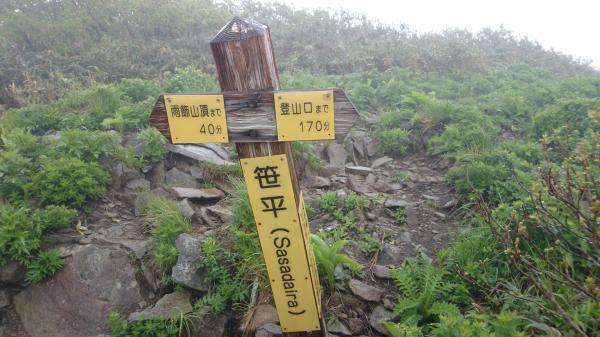 - 雨飾高原キャンプ場(110分)荒菅沢(90分)笹平(25分)雨飾山(15分)笹平(55分)荒菅沢(95分)雨飾高原キャンプ場