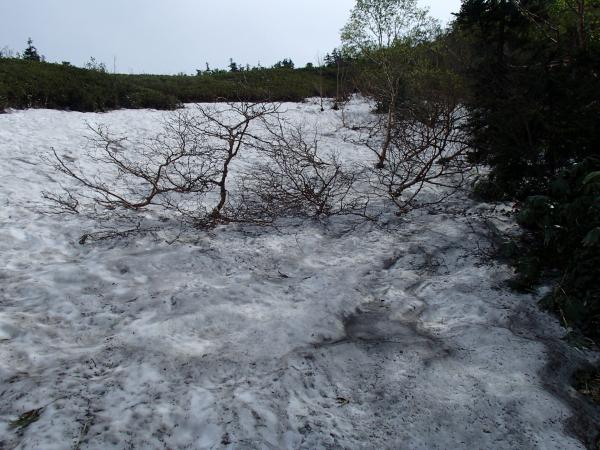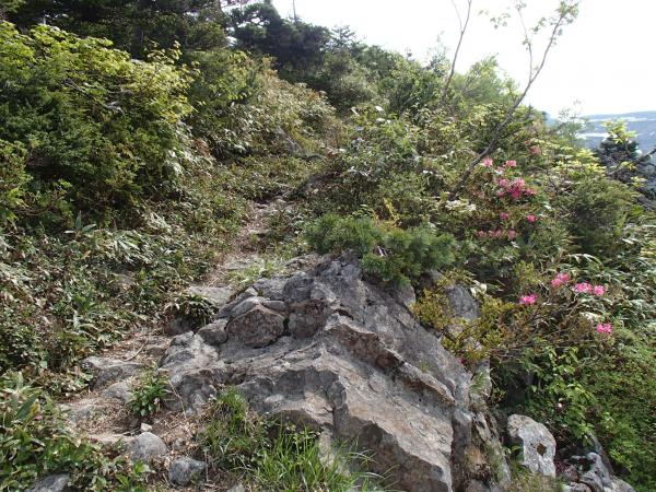 - 残雪はほとんどルート上から消えています。夏道がしっかりと出ているのでルートを失う心配が随分と少なくなりました。釈迦岳前峰手前から花が現れてきます、咲き始めといった感じ。